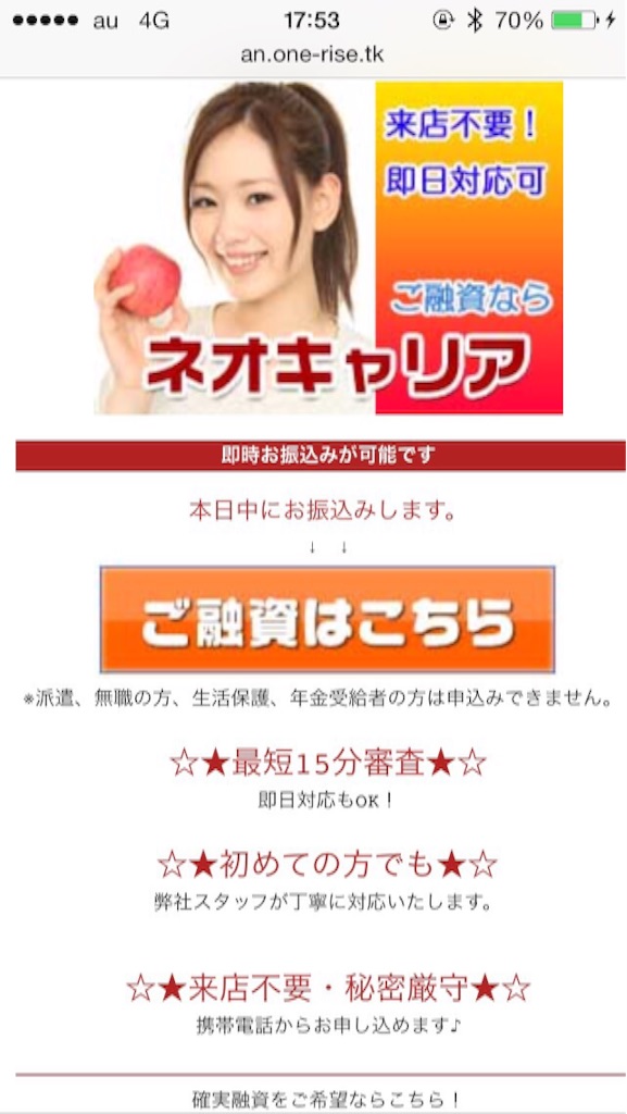 WORLDファイナンスが使用している、スマホサイトのデザインは他の闇金も名前だけを変えて多数利用している、闇金専用のスマホサイトです。