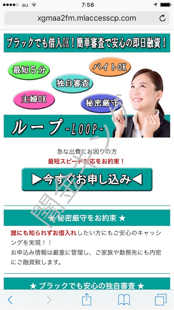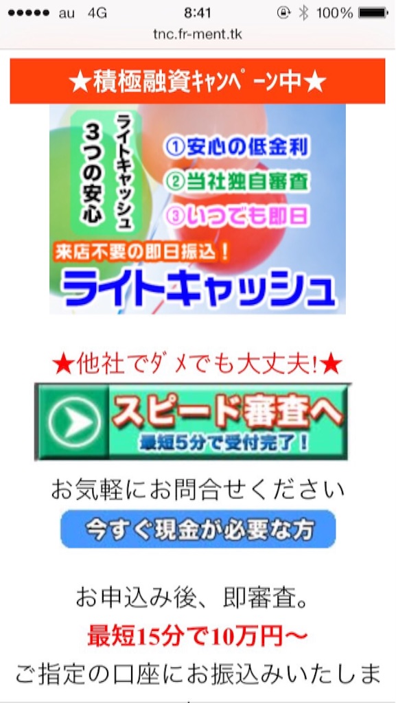 甘い条件に騙されて、絶対に申込しないようにして下さい、申し込みしてもお金を貸してくれる事はありません。