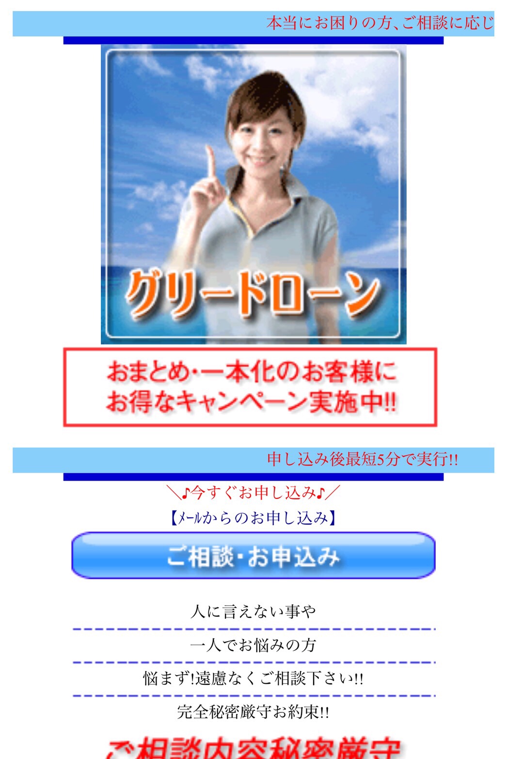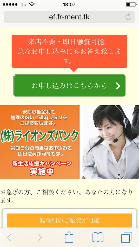 甘い条件に騙されて、絶対に申込しないようにして下さい、申し込みしてもお金を貸してくれる事はありません。