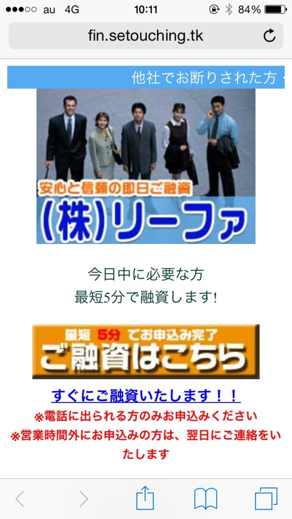 ビジネスローンを扱っているように見せかけていますが、闇金なので申し込みしないように注意してください。