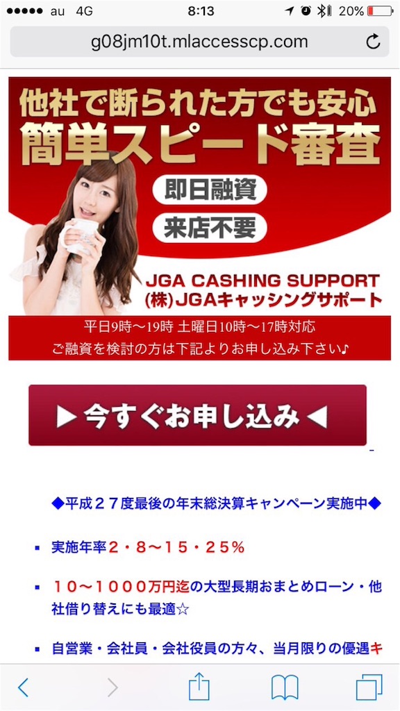 会社概要も適当に表示している危険なサイトです、甘い条件に騙されて、絶対に申込しないようにして下さい。