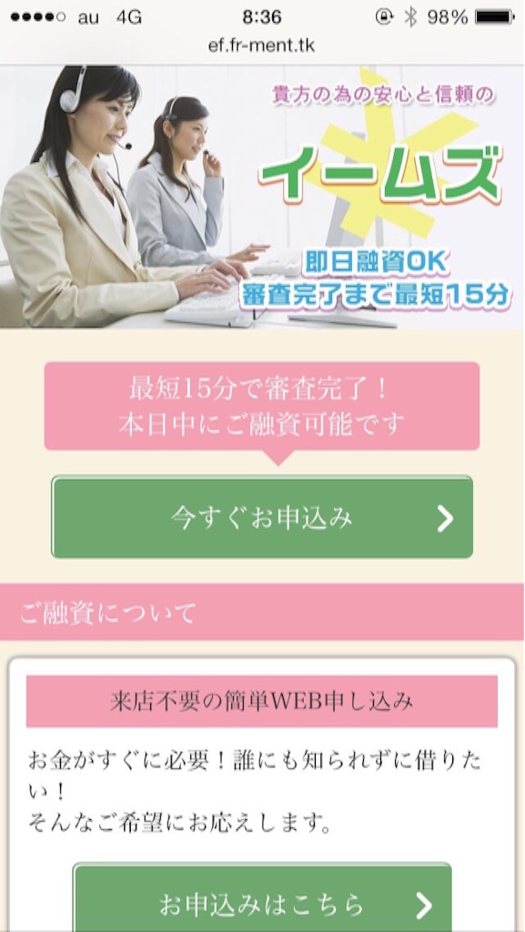 記載されている文言を確認して見ると、他社でNGでもOKなど、魅力的な、過激な文言で申し込みさせようとしています。