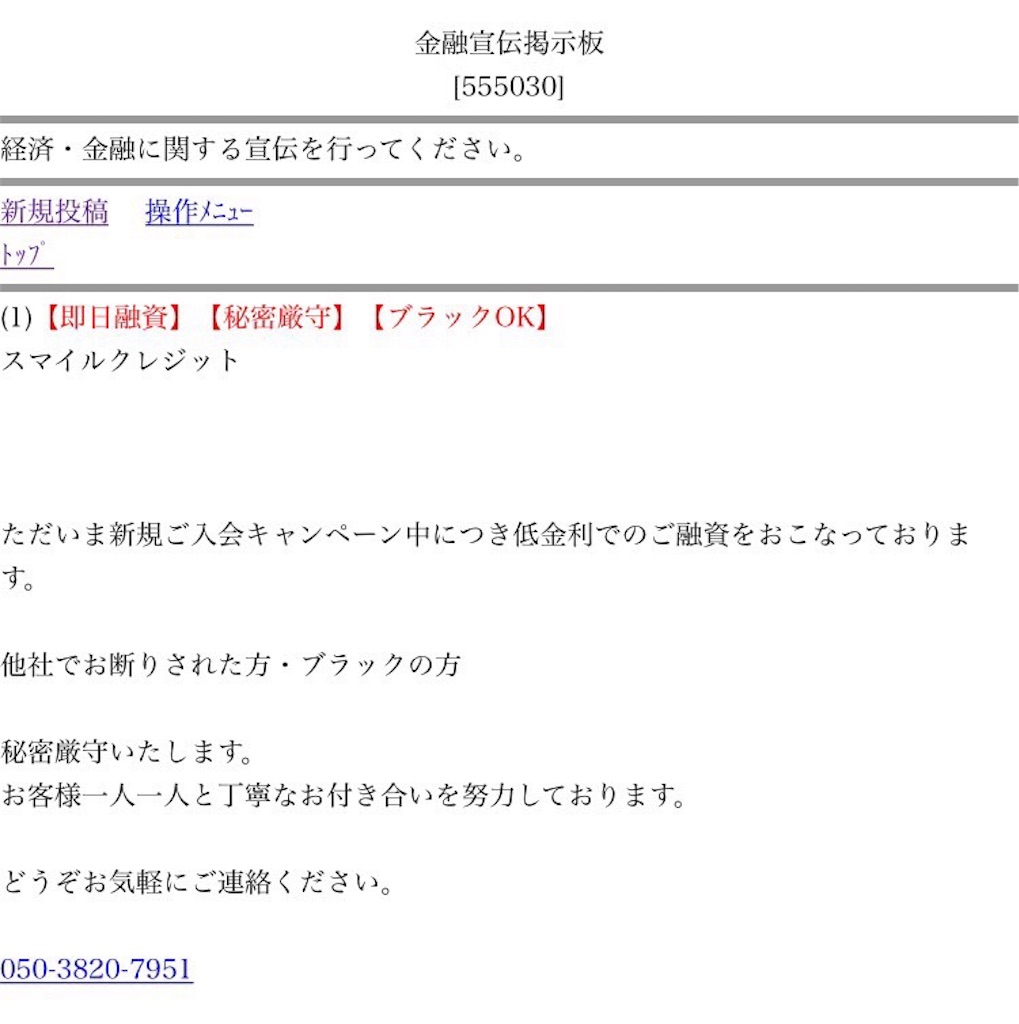 貸金業登録番号も記載されていないのは、正規の金融会社では無いことの証拠です、完全に闇金なので注意して下さい。