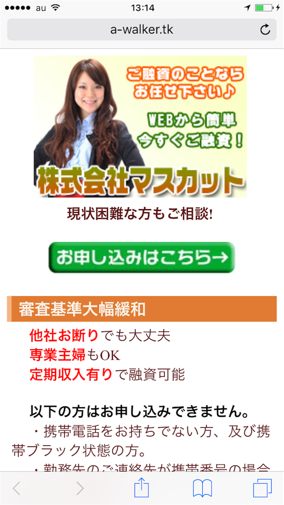 甘い条件に騙されて、絶対に申込しないようにして下さい、申し込みしてもお金を貸してくれる事はありません。