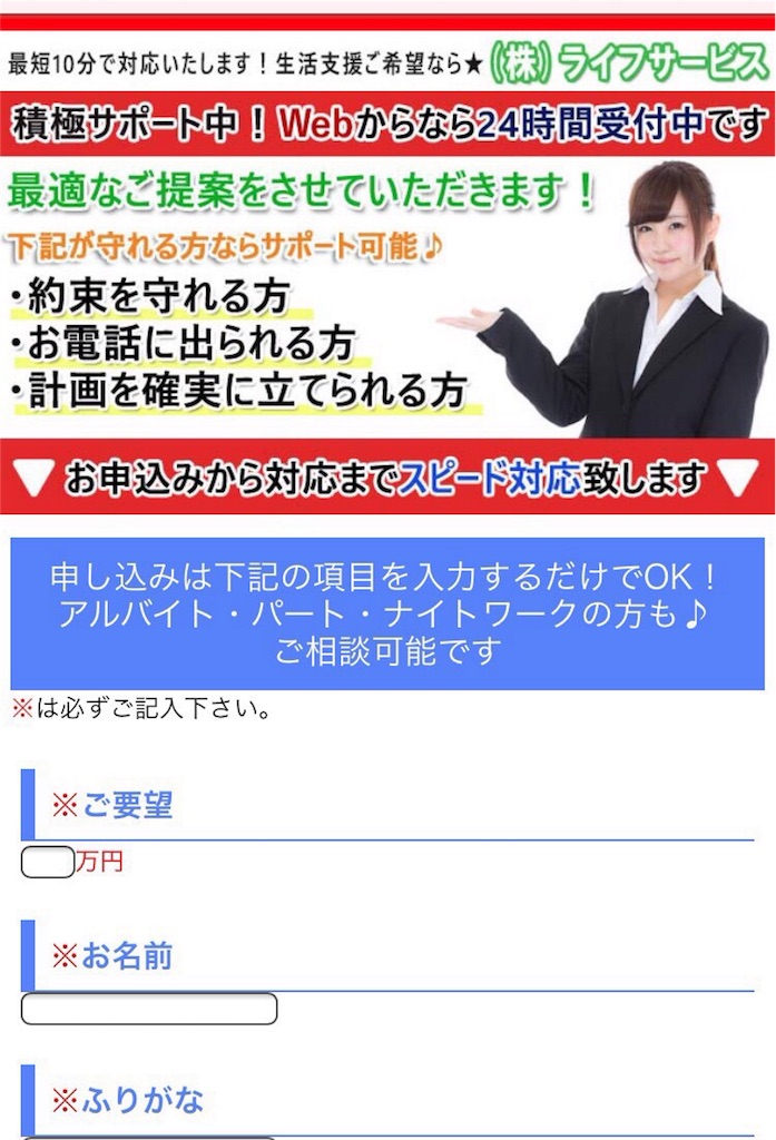 綺麗なサイトになっており、正規の金融会社のように見えますが、完全に闇金です。