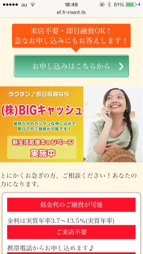 綺麗なサイトになっており、正規の金融会社のように見えますが、完全に闇金です。