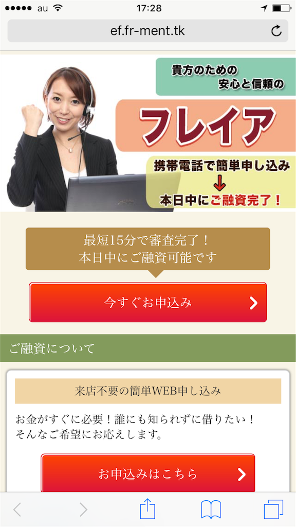 最近、同じ闇金業者が同じサイトデザインを利用して、業者名だけを変えて、違法行為を行っているので注意して下さい。
