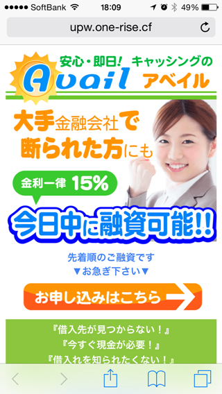 「メールで失礼いたします★一月に一度の返済☆最短30分でのスピード融資!!秘密厳守!まずはお気軽にご返信ください!短期のまとめもご相談ください。」など書いていますが、闇金の言う事なんて信じてはいけません。