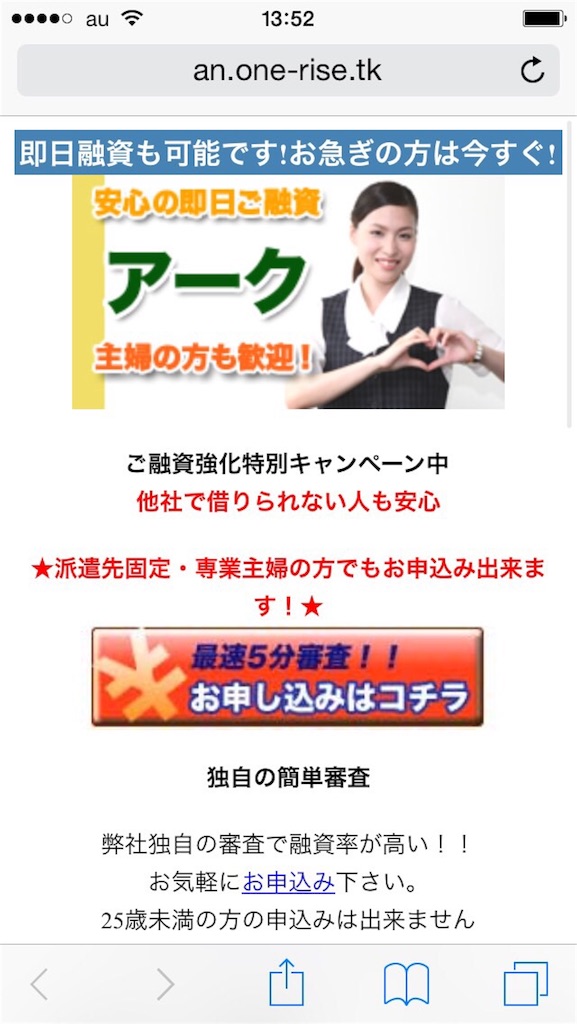 1ページだけで作り込まれた、1ページ闇金と呼ばれる手法です、騙されないように注意してください。