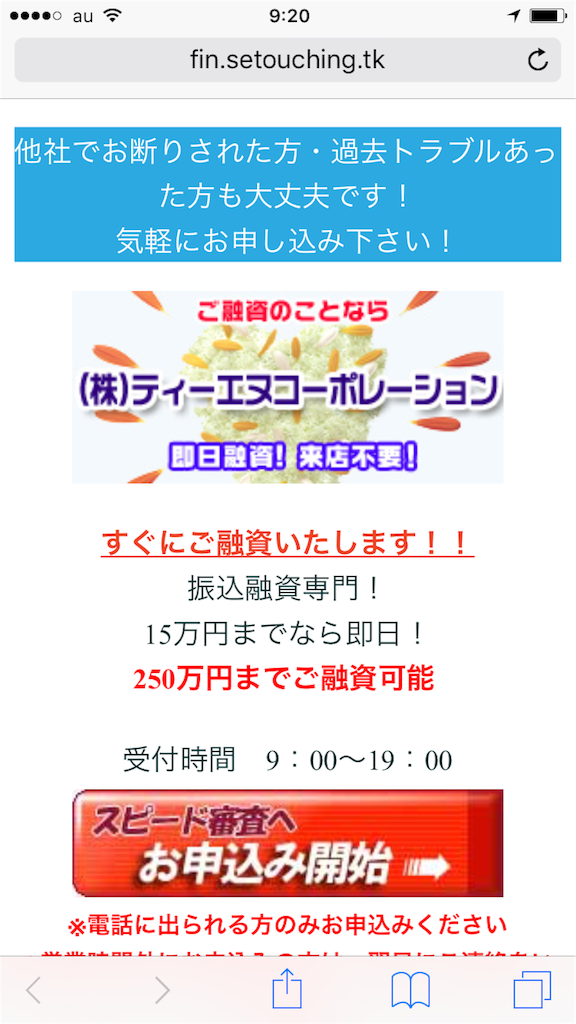 綺麗なサイトになっており、正規の金融会社のように見えますが、完全に闇金です。