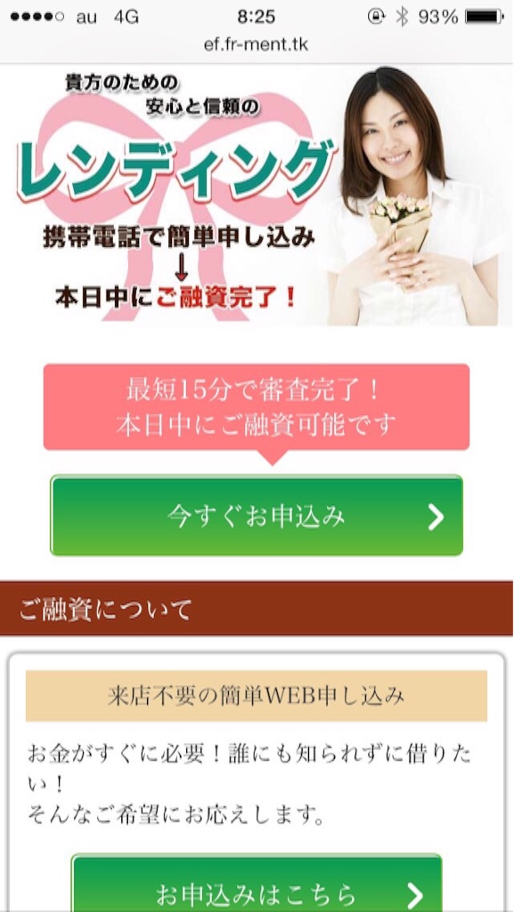 最近はやりの、1ページだけで作り込まれた闇金です、申し込みしないように注意してください。