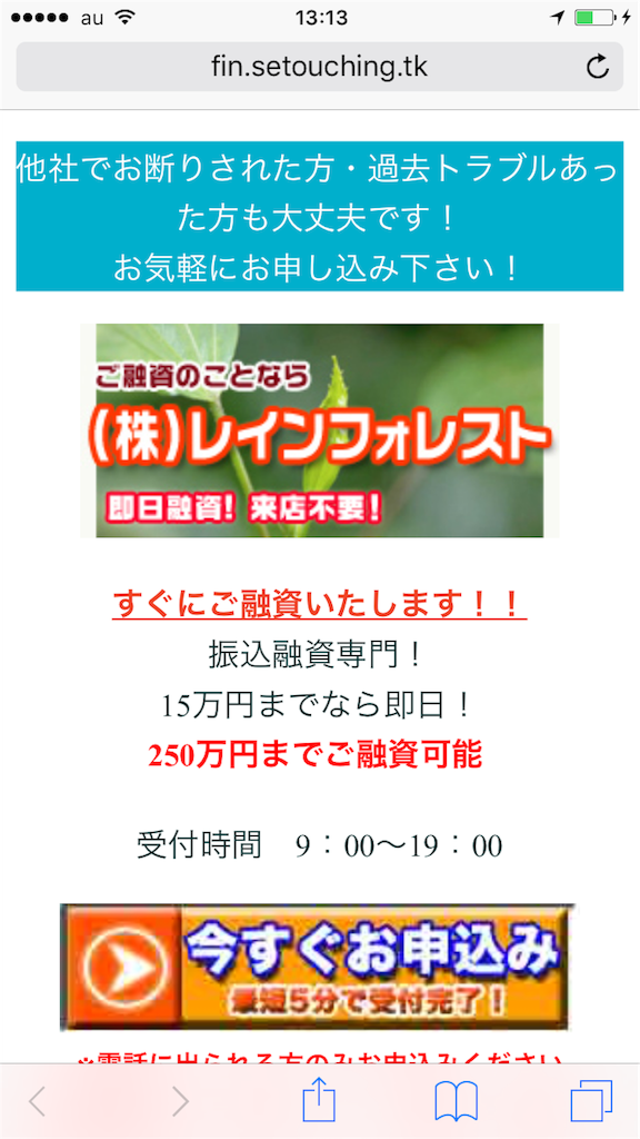 「最大30万まで月に1度の返済で利息10%にて融資してます。生活費まとめなど気軽にご連絡下さい ダイワ秋山」など書いていますが、闇金の言う事なんて信じてはいけません。