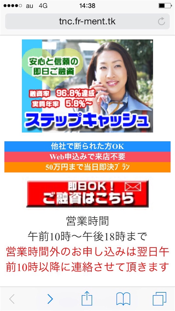 綺麗なデザインのホームページで、申し込みするといかにも正規の金融会社を紹介してくれるように書いていますが、完全な闇金なので注意してください。