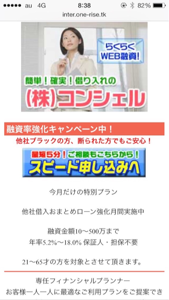 綺麗に作り込まれたスマホサイトを見ると、正規金融業者の貸金サイトに見えますが、貸金業登録を行っていない無登録の違法サイトです。