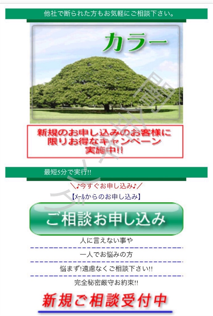 サイトの中身を確認して見ると、貸金業法で禁じられている違法な表現がたくさん使用されています。