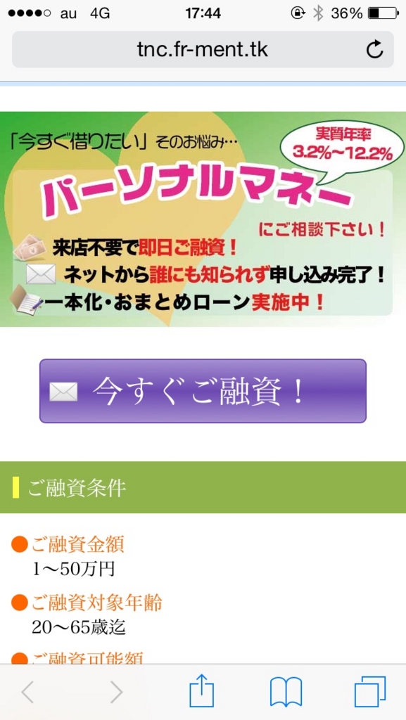 最近はやりの1ページだけで作り込まれた、1ページ闇金と呼ばれる違法業者です。