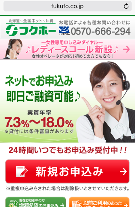 来店不要で即日融資可能、10万円~50万円の融資枠、電話対応はものすごく丁寧でした。